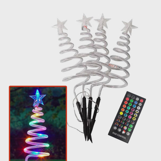 Lleva la magia de la Navidad a tu espacio exterior con estas luces en espiral con forma de árbol. Un juego de 4 luces espirales multicolores para mostrar realmente tu espíritu navideño.Cada árbol en espiral iluminado por 15 LED multicolor que irradian alegría navideña en esta Navidad. Con control remoto desde el cual podría elegir el color deseado o ritmo de luces brillantes y deslumbrantes. La mejor manera de añadir un poco de color a tu jardín, tu balcón o el lugar que quieras decorar. Estas luces de estaca traerán el espíritu navideño al aire libre.Estas luces lucirán geniales en sus macizos de flores, a lo largo de su camino, en cualquier lugar que considere adecuado. *¿Tu producto tiene alguna novedad que debamos reportar?* **Una vez recibas tu producto, cuentas con máximo 5 días para reportar a Soporte: piezas faltantes, rotas o cualquier novedad que presente el producto. *¿No era lo que esperabas?* **Aplica Ley retracto Durante 5 días, contados a partir de la recepción del producto, para la devolución, ten en cuenta que debe estar en las condiciones que se recibió, con su empaque original, con las etiquetas, sellos de seguridad, y contar con todas sus partes y/o accesorios. Sin rayones ni manchas. Se recibirá únicamente en óptimas condiciones. Se anulará automáticamente el derecho a retracto si el producto fue usado. *¿Tu producto está presentando fallas?* **Cuentas con 30 días de garantía por funcionamiento y/o daños del producto que no estén relacionados a su mal uso. Para hacer efectiva la devolución, el producto debe entregarse debidamente protegido cuidando el estado del empaque original, incluir todos los documentos y/o manuales (si aplica) y las partes completas.
